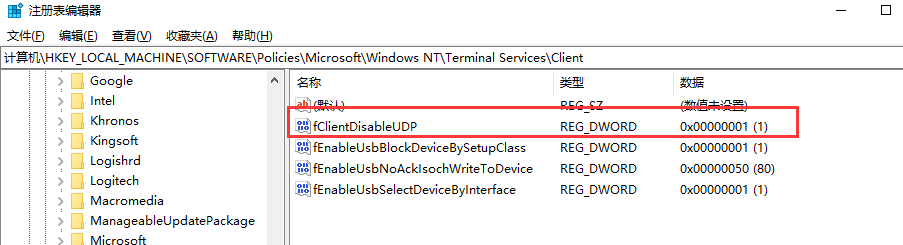 2.本地电脑禁用UDP方式登陆远程桌面