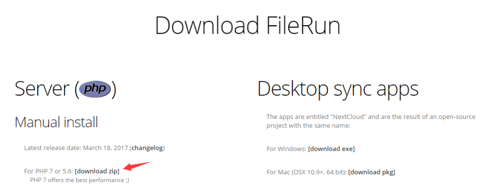 7. 现在来下载FileRun的安装包:http://www.filerun.com/download